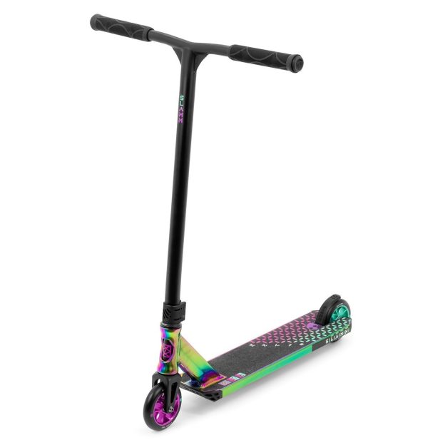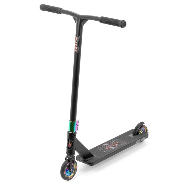 Swirl Team grips and coloured wheel PU, combined with both front and rear deck blocks, Slammβs exclusive Coffin Connector and impact resistant bar ends, make the Classic Mini the perfect entry-level stunt scooter, designed and made for riders of 4+ years!